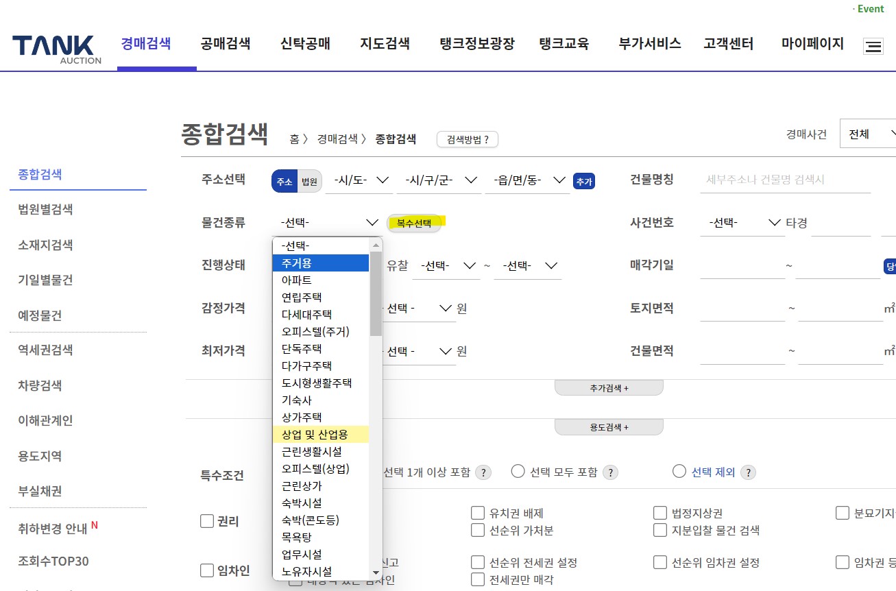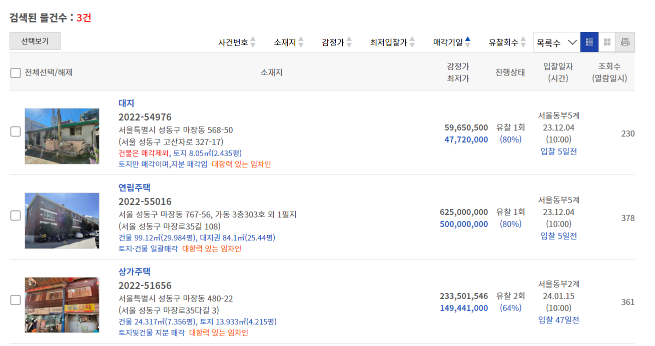 이제 경매물건을 검색해보자